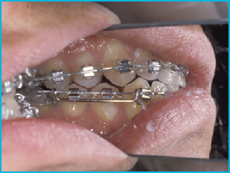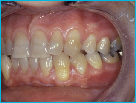 3.Grazie all'applicazione di un apparecchio fisso, sono stati portati indietro tutti i denti dell'arcata inferiore per poter allineare e inclinare correttamente gli incisivi inferiori.