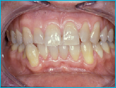 1.Le fotografie mostrano che i denti inferiori oltre ad essere affollati sono posti più anteriormente rispetto al modello ideale.